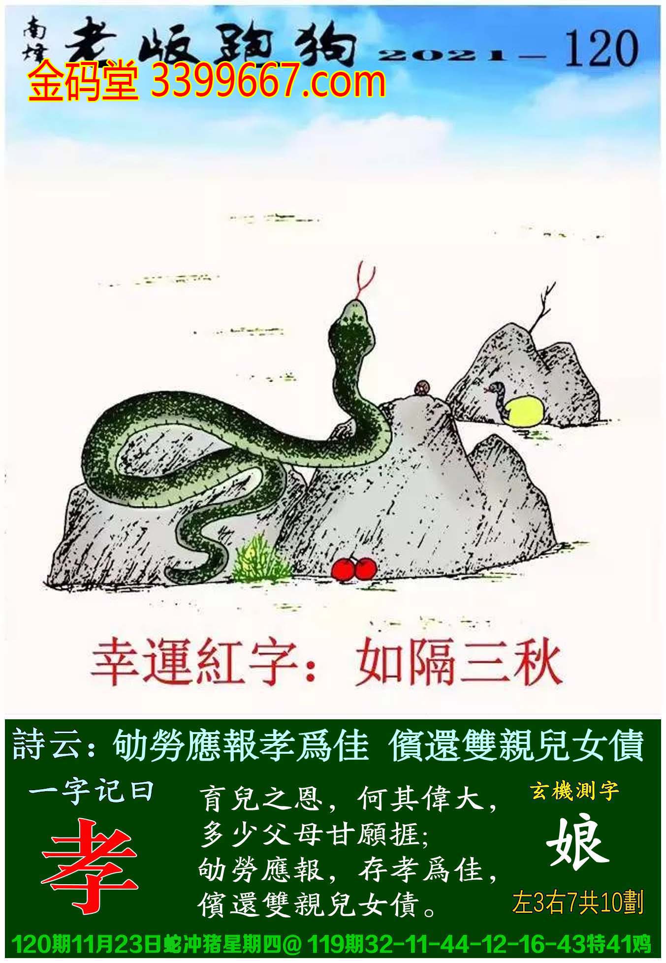 120期老版跑狗一字記之曰:【孝】玄機測字:《娘》