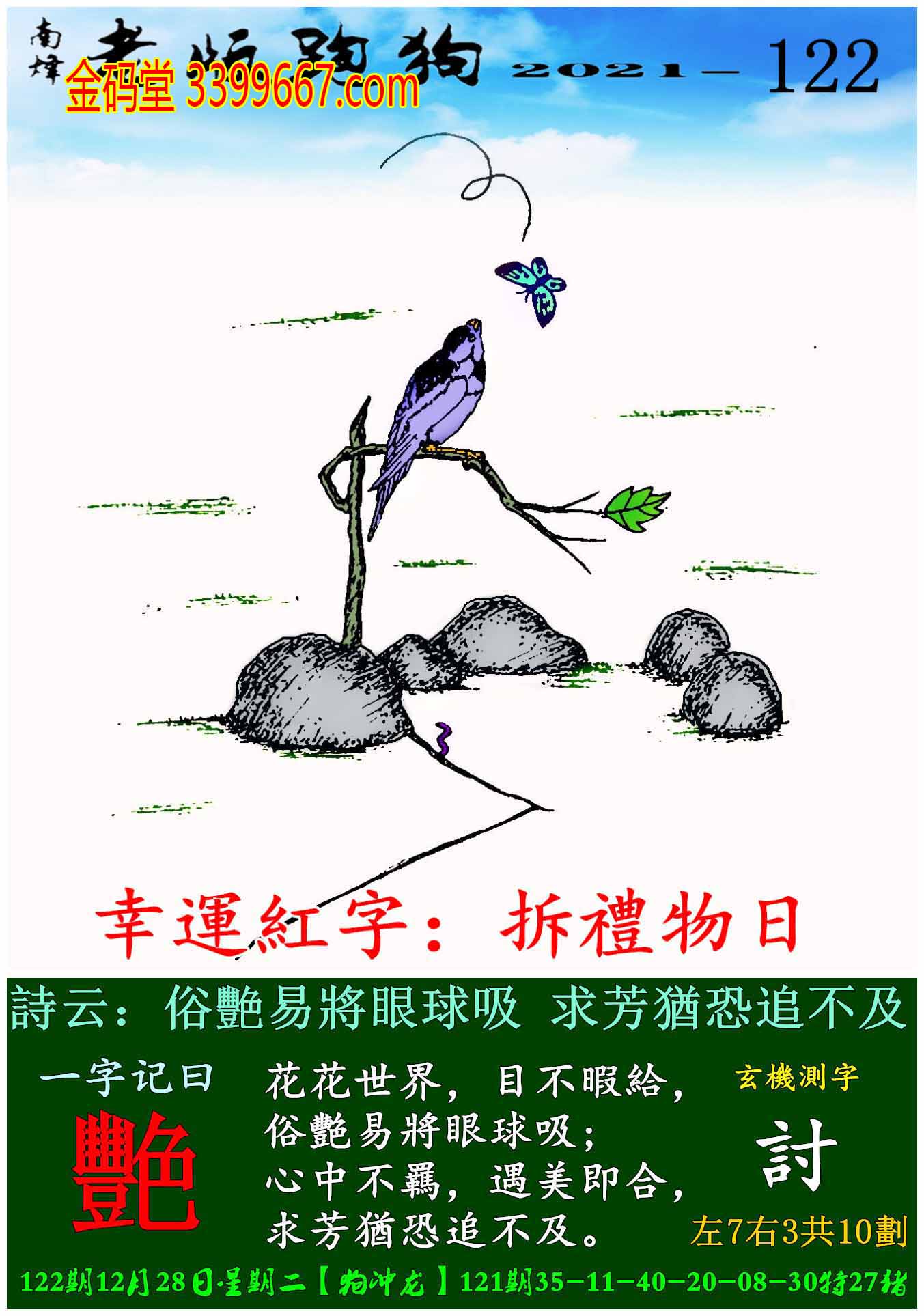 主题 : 122期老版跑狗一字記之曰:【細】玄機測字:《討》