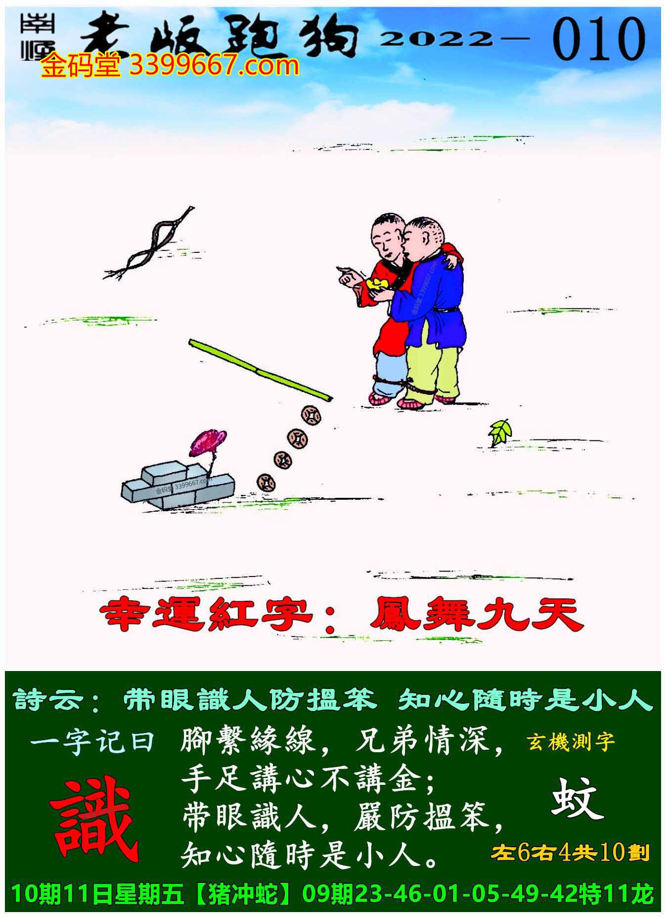 010期老版跑狗一字記之曰:【識】