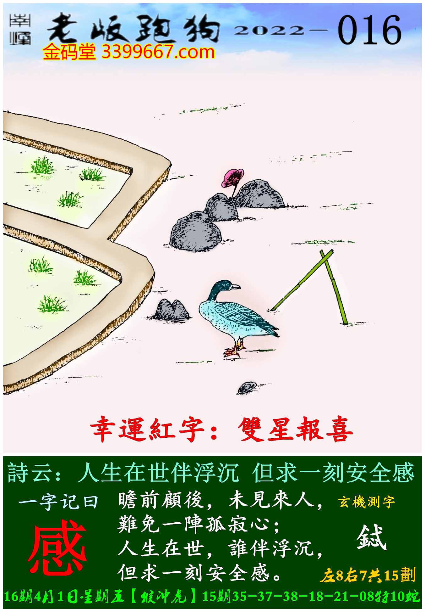 016期老版跑狗一字記之曰:【感】