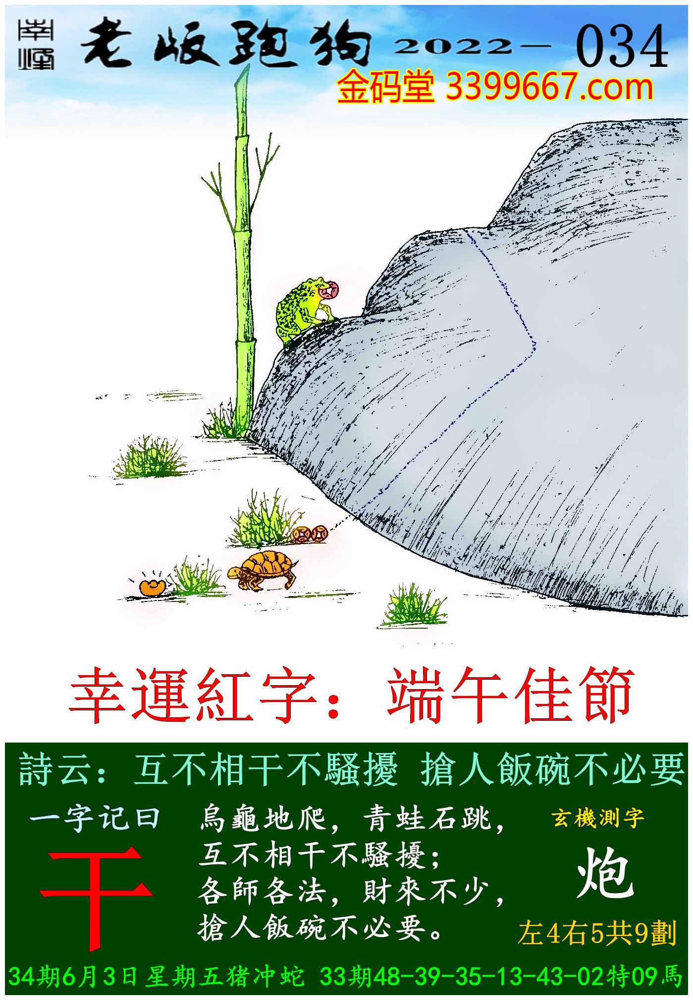 主题 : 034期老版跑狗一字記之曰:【干】玄機測字:《炮》