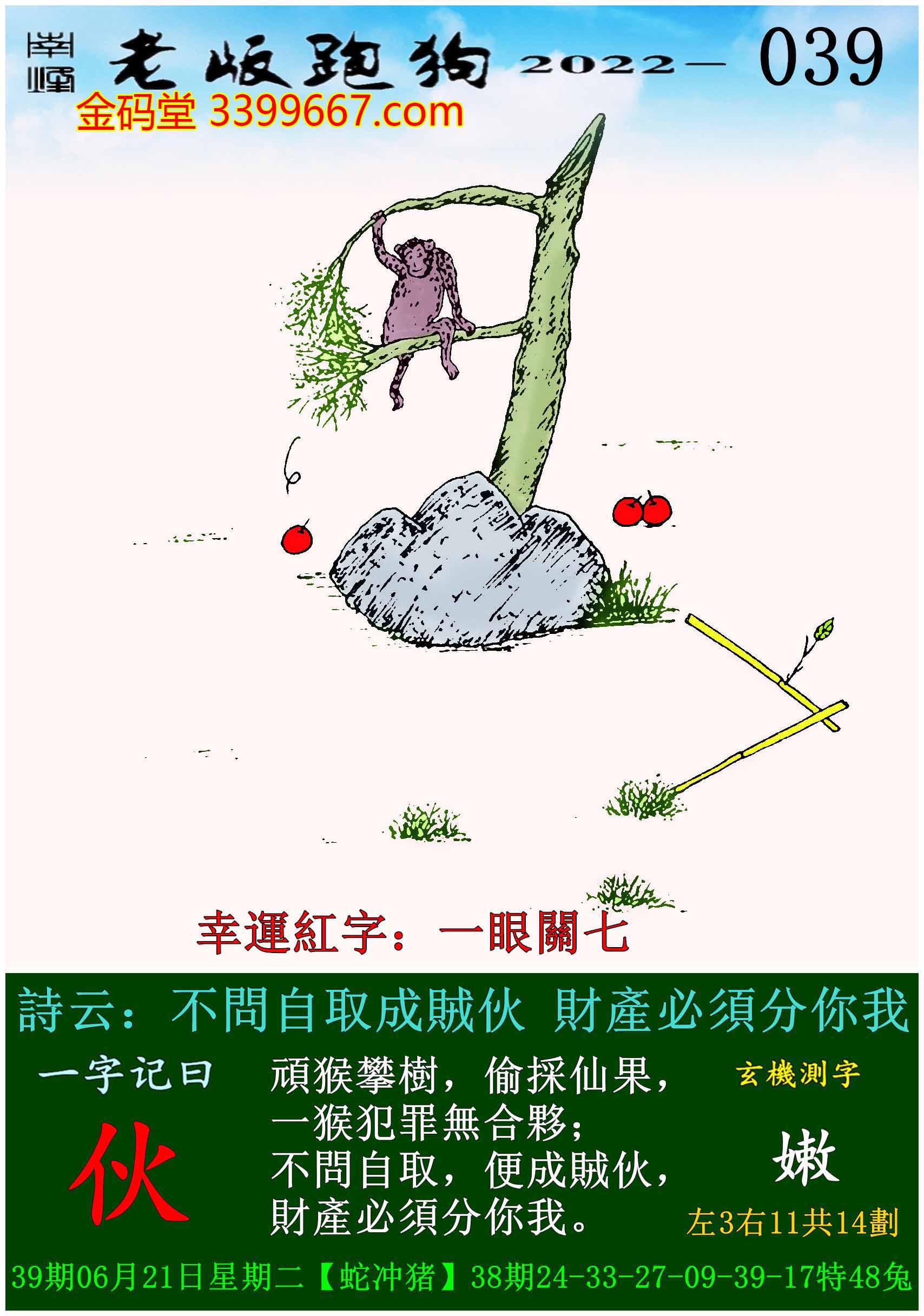 主题 : 039期老版跑狗一字記之曰:【伙】玄機測字:《嫩》
