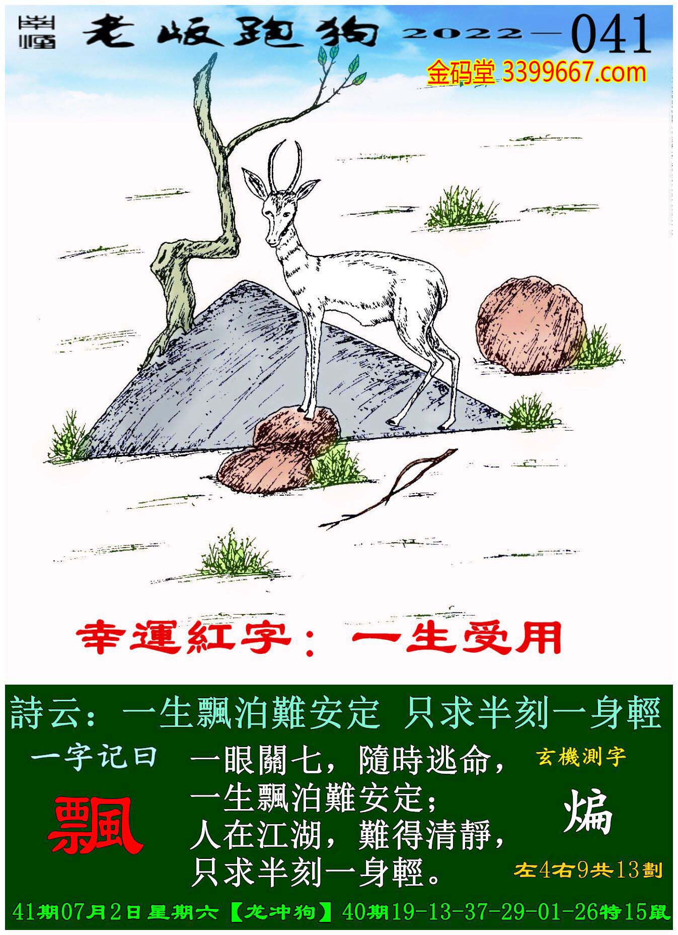 041期老版跑狗一字記之曰:【飄】