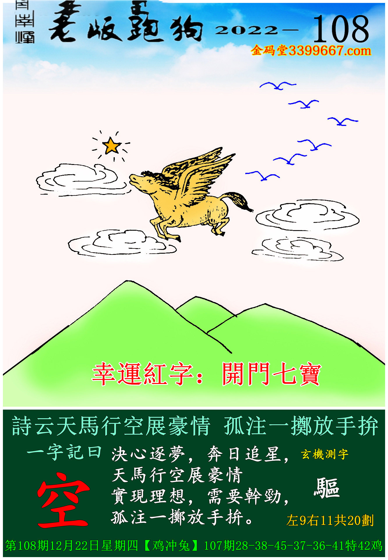 108期老版跑狗一字記之曰:【空】