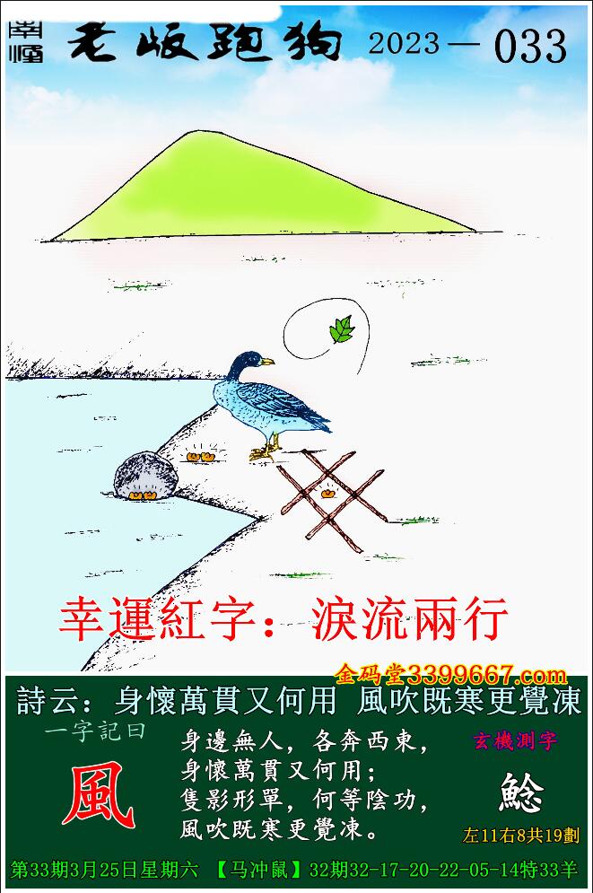 033期老版跑狗一字記之曰:【風】 玄機測字:《鯰》
