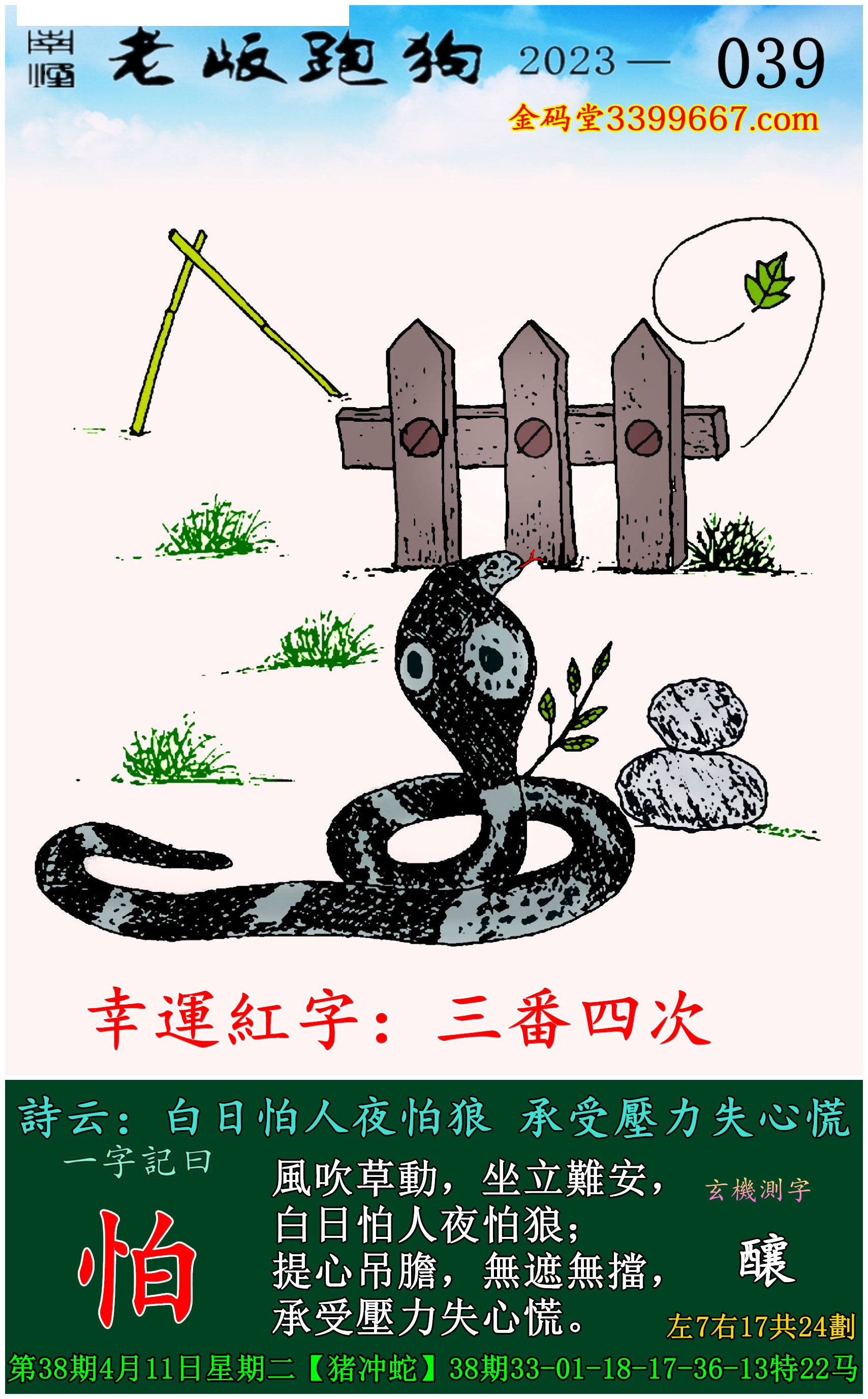 039期老版跑狗一字記之曰:【怕】