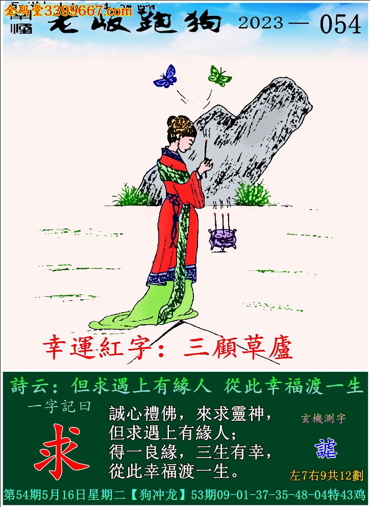 主题 : 054期老版跑狗一字記之曰:【求】 玄機測字:《謔》