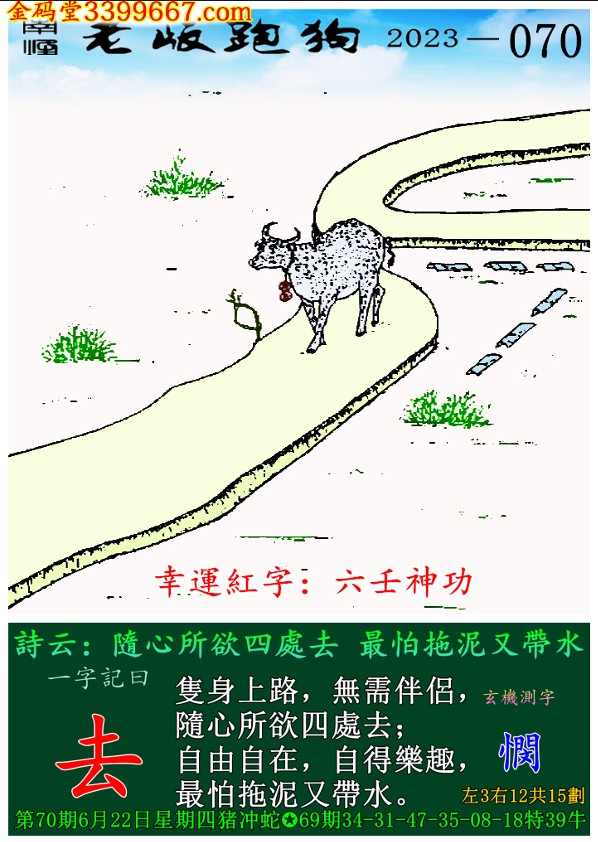 070期老版跑狗一字記之曰:【去】