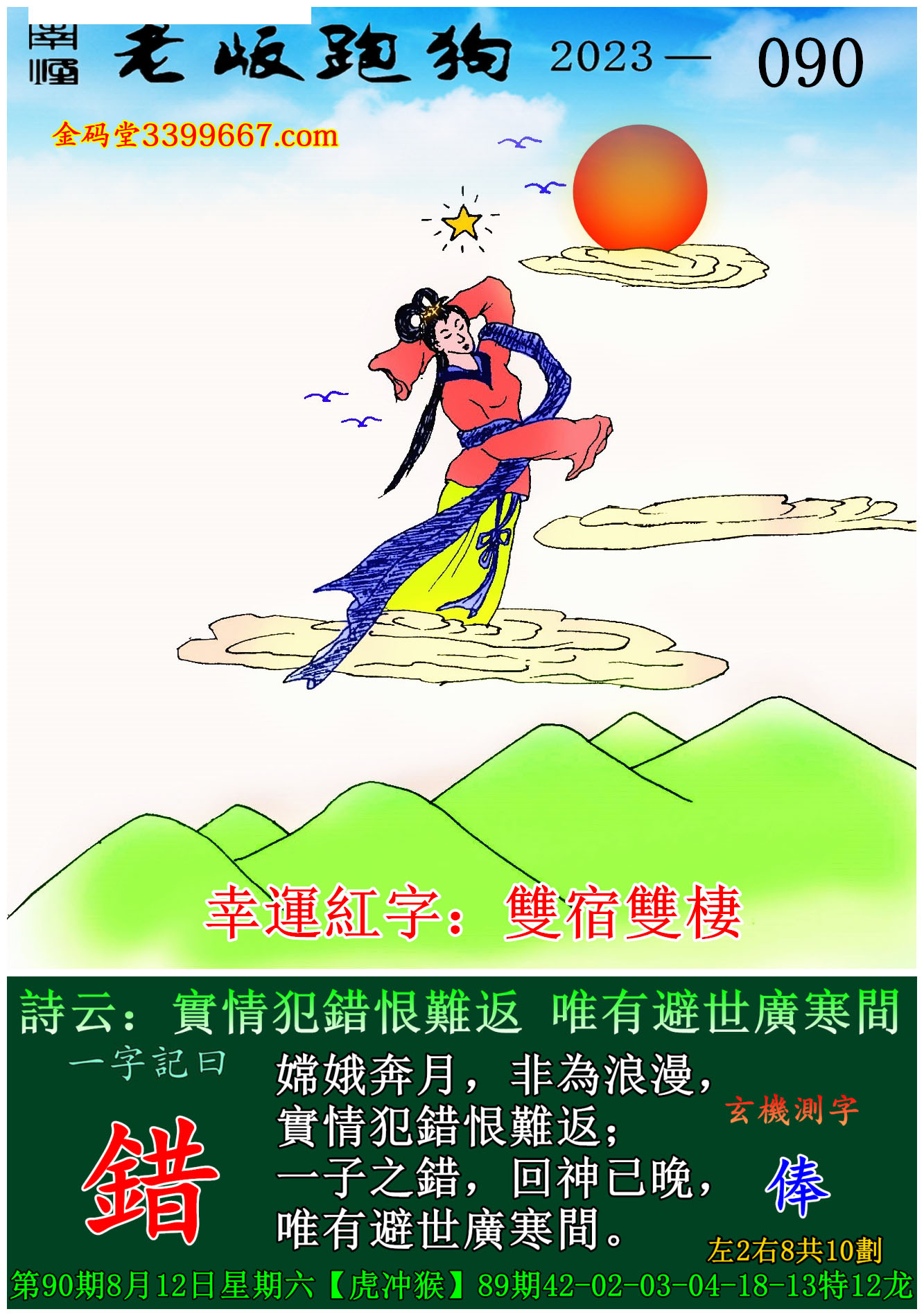090期老版跑狗一字記之曰:【錯】玄機測字:《俸》