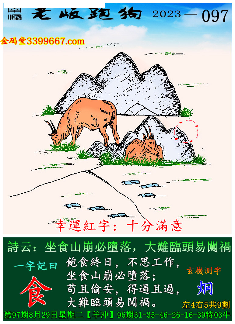 主题 : 097期老版跑狗一字記之曰:【食】玄機測字:《炯》