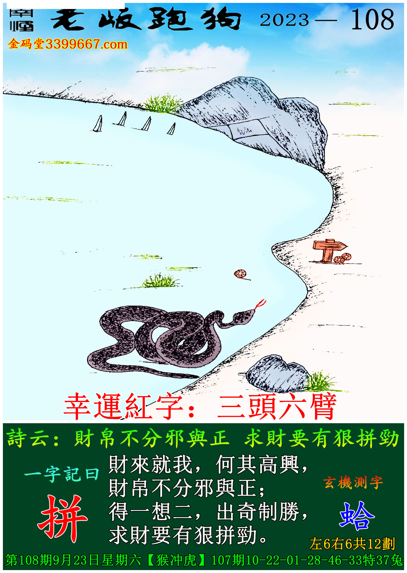 108期老版跑狗一字記之曰:【拼】