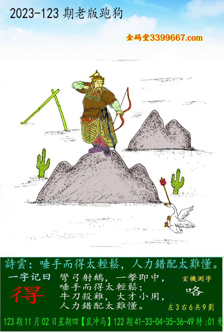 123期老版跑狗一字記之曰:【得】