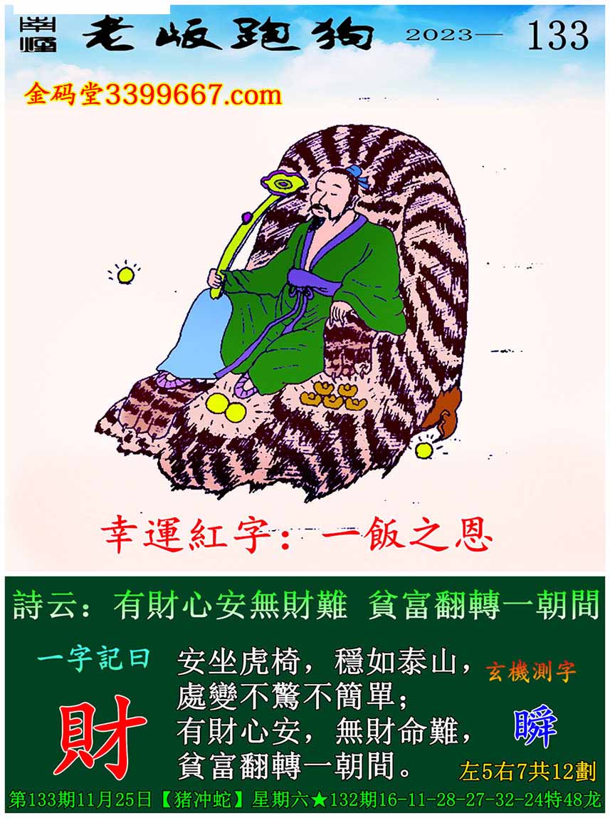 133期老版跑狗一字記之曰:【財】