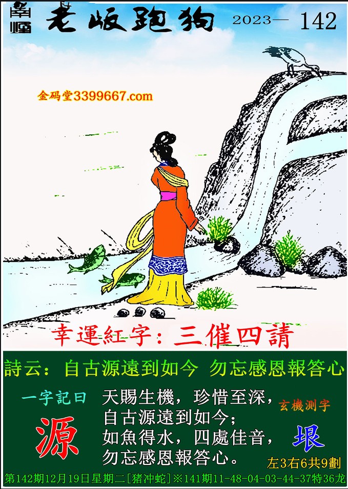 142期老版跑狗一字記之曰:【源】 玄機測字:《垠》