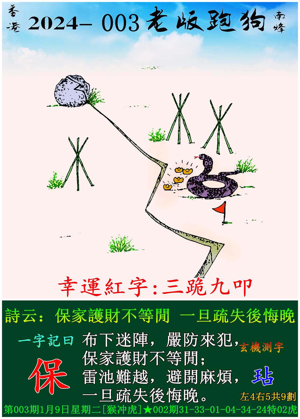 003期老版跑狗一字記之曰:【保】