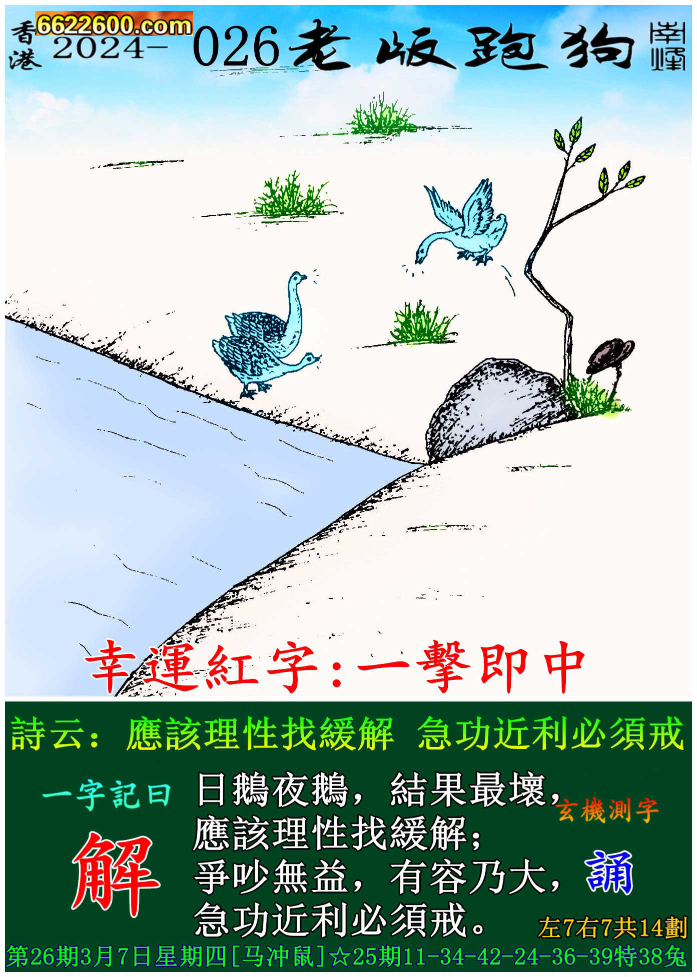 主题 : 026期老版跑狗一字記之曰:【解】 玄機測字:《誦》