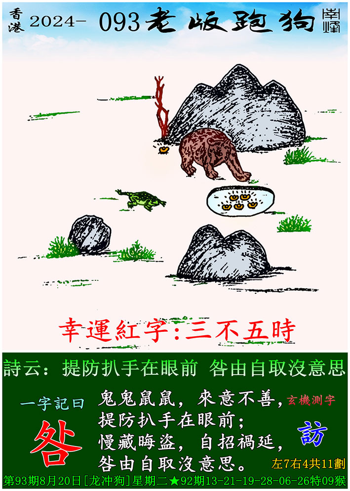 093期老版跑狗一字記之曰:【咎】 玄機測字:《訪》