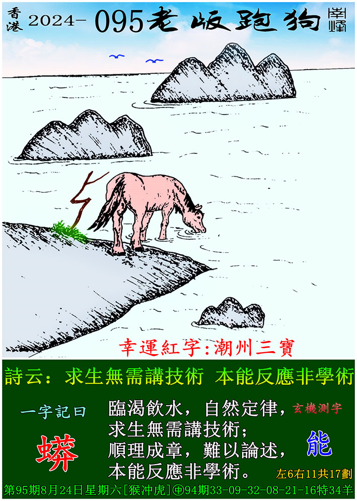 095期老版跑狗一字記之曰:【蟒】 玄機測字:《能》