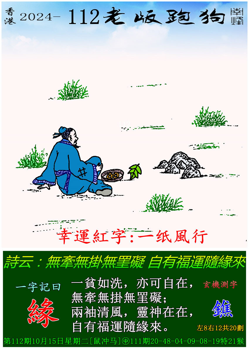 主题 : 112期老版跑狗一字記之曰:【綫】 玄機測字:《鐎》