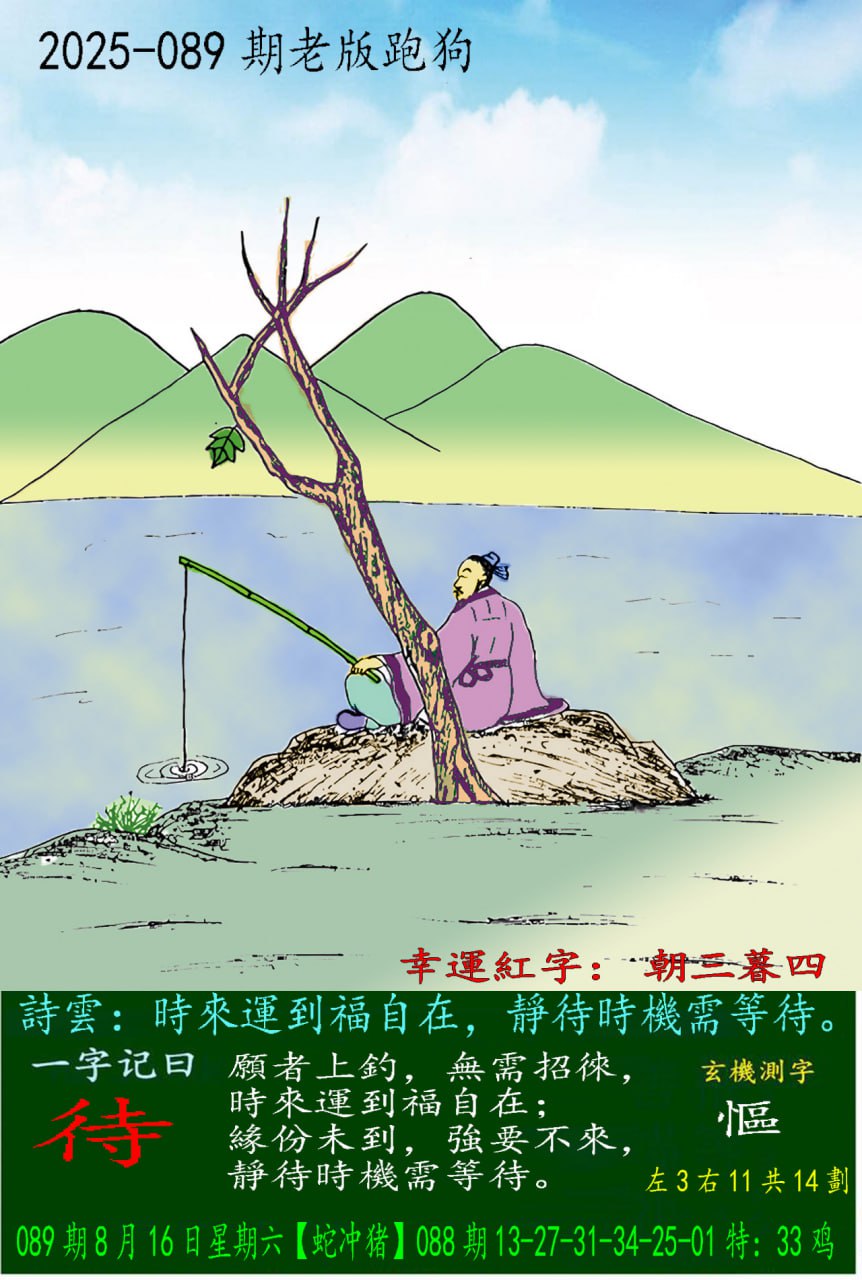 主题 : 089期老版跑狗一字記之曰:【待】 玄機測字:《慪》