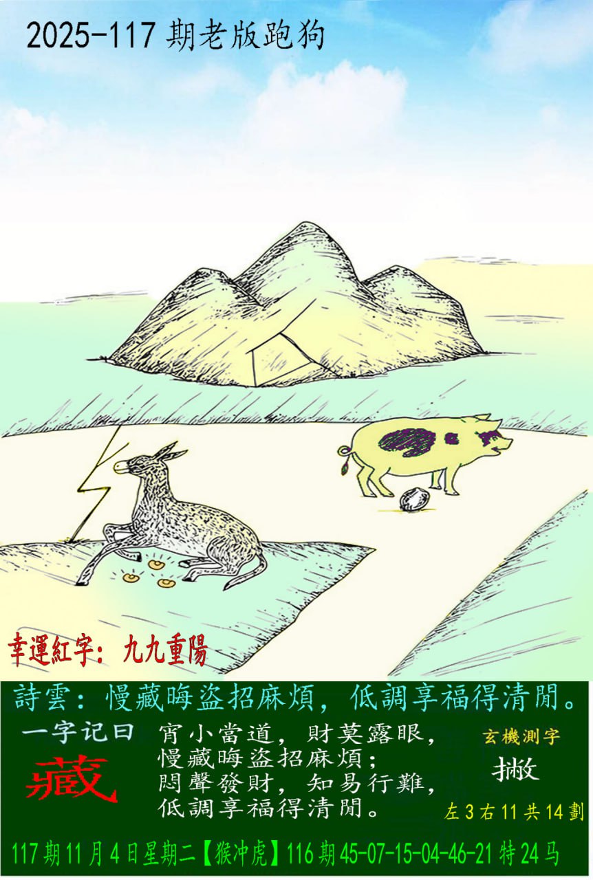主题 : 117期老版跑狗一字記之曰:【藏】 玄機測字:《撇》