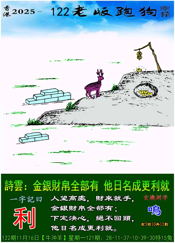 122期老版跑狗一字記之曰:【利】