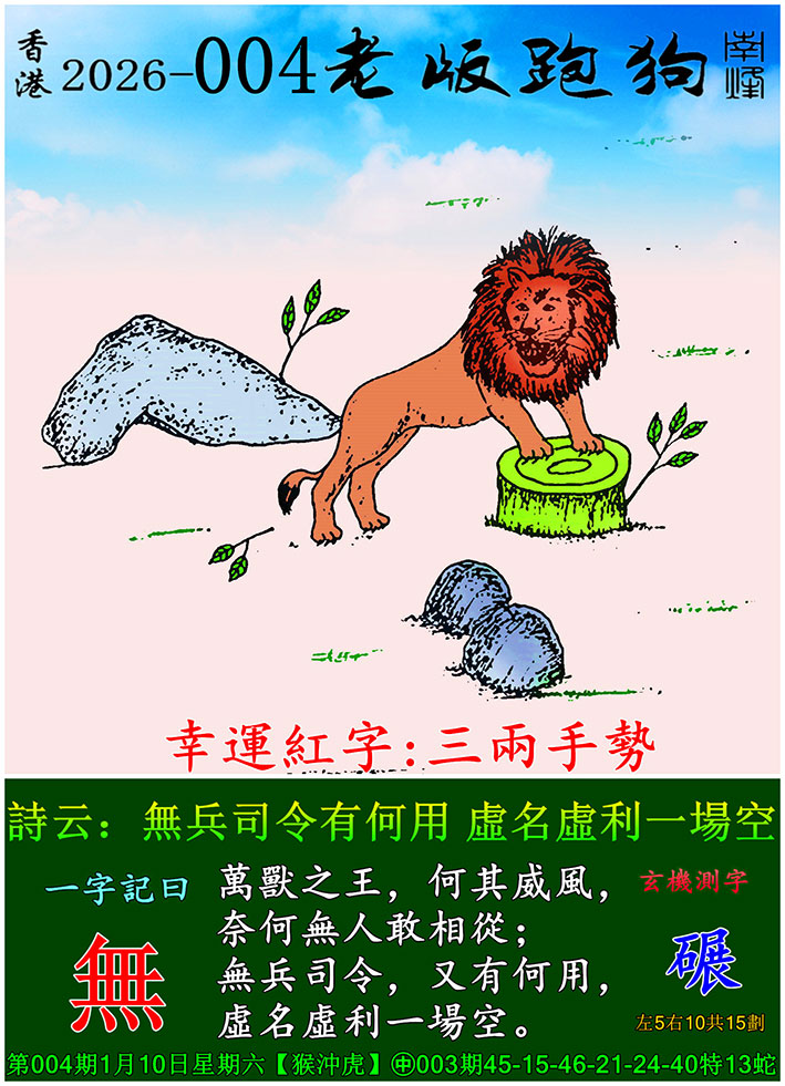 004期老版跑狗一字記之曰:【無】