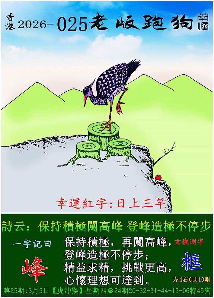 025期老版跑狗一字記之曰:【峰】 玄機測字:《框》