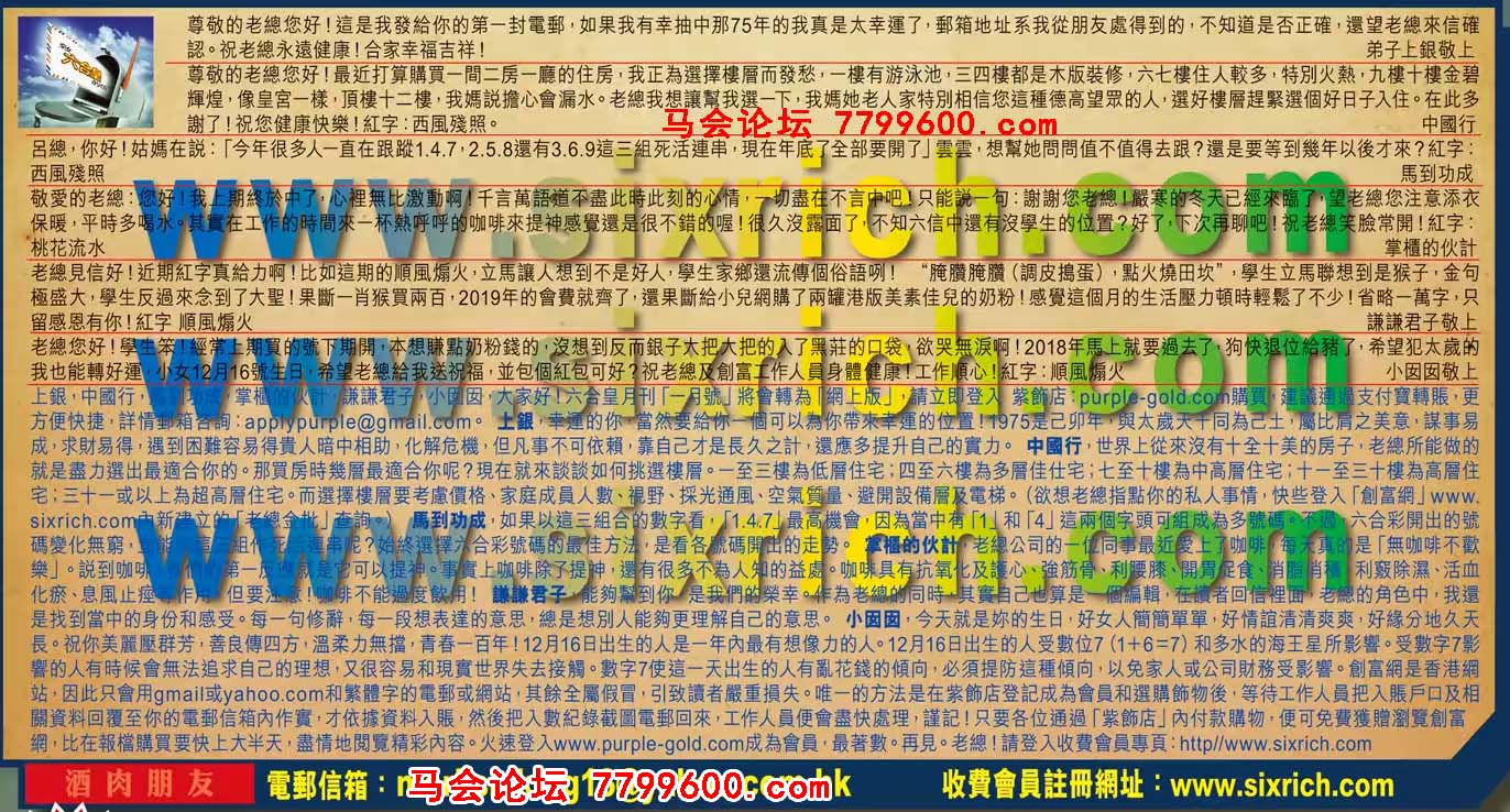 【5】老總見信好!近期紅字真給力啊!比如這期的順風煽火,立馬讓人想到不是好人,學生家鄉還流傳個俗語咧!腌牘腌攢(調皮搗蛋),點火燒田坎”,學生立馬聯想到是猴子,金句極盛大,學生反過來念到了大聖!果断一肖猴買兩百,2019年的會费就齊了,還果斷給小兒網購了兩罐港版美素佳兒的奶粉!感覺這個月的生活壓力頓時輕鬆了不少!省略一萬字,只留感恩有你!红字 順風煽火 ---謙謙君子敬上