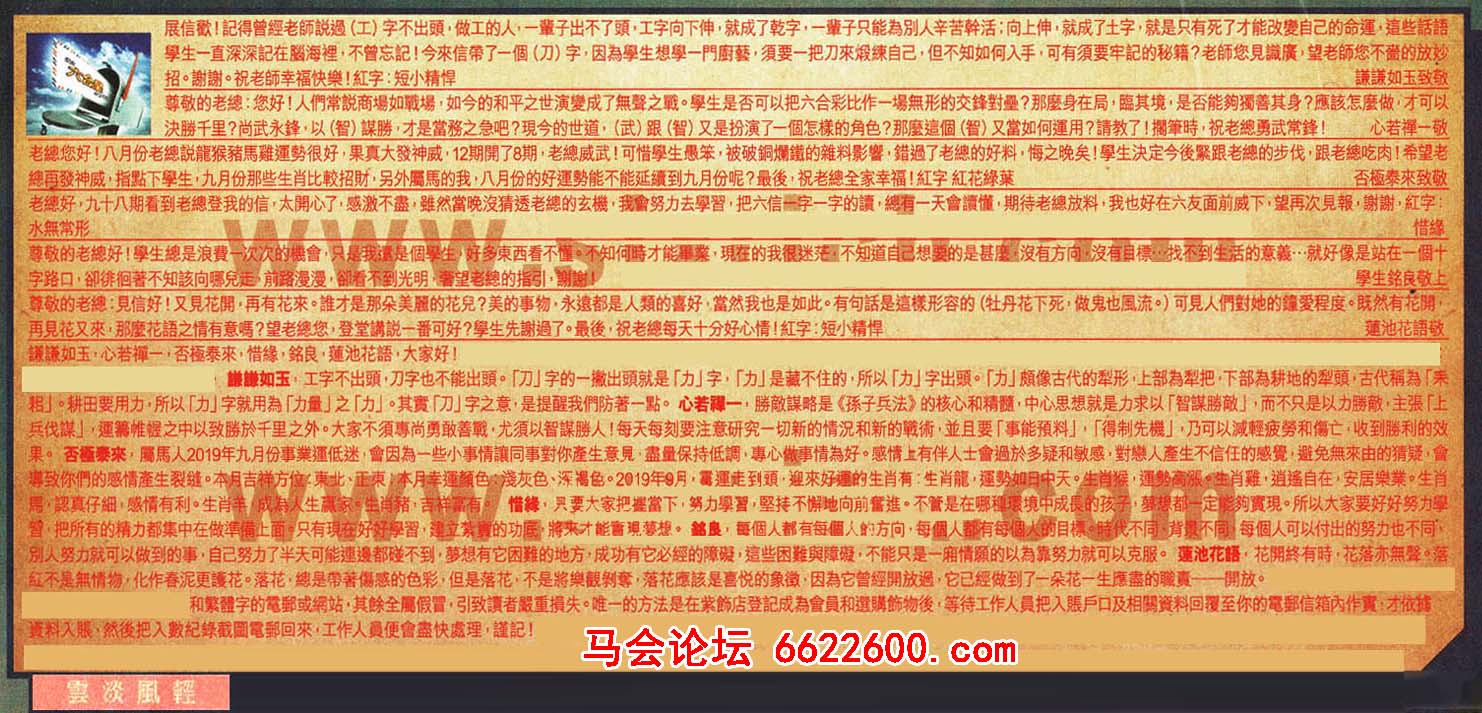 【4】.老總好,九十八期看到老總登我的信,太開心了,感激不盡,雖然當晚沒猜透老總的玄機,我會努力去學習,把六信一字一字的讀,總有一天會讀懂,期待老總放料,我也好在六友面前威下,望再次見報,謝謝,紅字:水無常形    惜緣