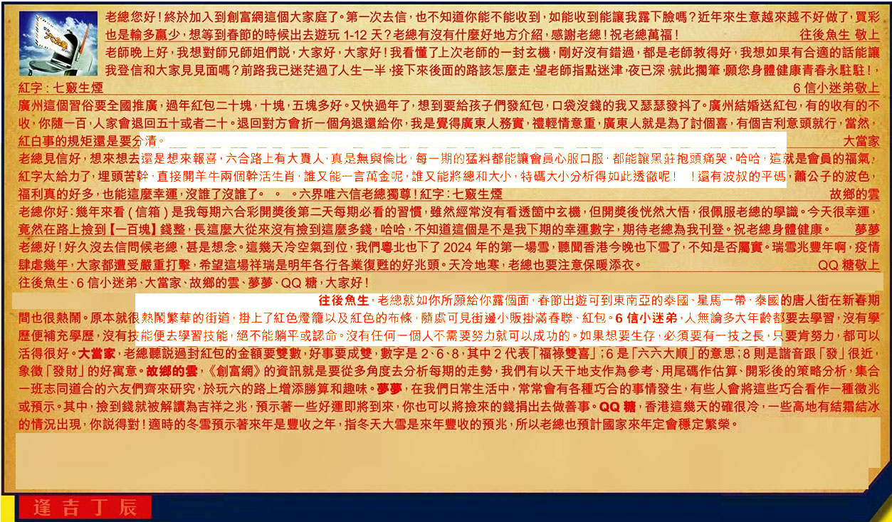 【2】.老師晚上好,我想對師兄師姐們說,大家好,大家好!我看懂了上次老師的一封玄機,剛好沒有錯過,都是老師教得好,我想如果有合適的話能讓我登信和大家見見面嗎?前路我已迷茫過了人生一半,接下來後面的路該怎麼走,望老師指點迷津,夜已深,就此擱筆,願您身體健康青春永駐駐!,紅字:七竅生煙 6信小迷弟敬上