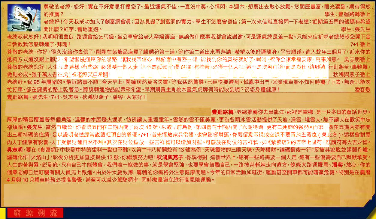 【2】.老總好!今天我成功加入了創富網會員;因為見證了創富網的實力。學生不怎麼會寫信;第一次來信 就直接問一下老總:近期第五門的號碼有希望開出麼?紅字:舊地重遊。  學生:張先生